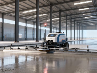 Ultra-flat concrete slabs with laser screed for jointless FM2 warehouse floors supporting narrow-aisle forklifts crack-free.
